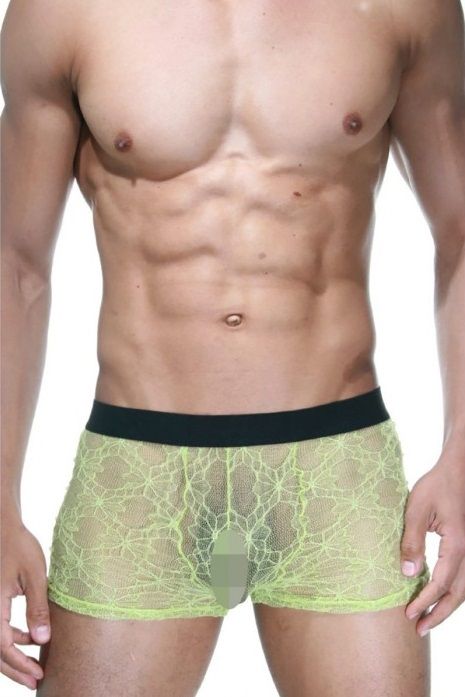 Мужские боксеры из полупрозрачного кружева с крупным плетением, на широкой черной резинке.