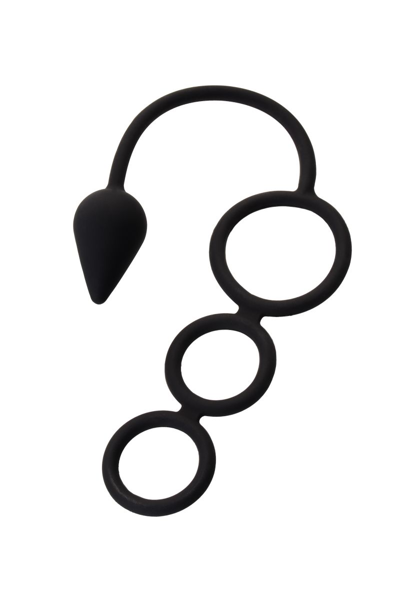 Эрекционное кольцо с дополнительной стимуляцией — это игрушка 3-в-1. Она делает мужскую силу масштабнее, а удовольствие объемнее. Конусообразная анальная пробка дарит превосходную анальную стимуляцию и эффективный массаж простаты. Эластичное эрекционное кольцо с поддержкой для мошонки усиливает эрекцию и продлевает эякуляцию. Длина пробки - 5 см., ширина - 3 см. Диаметр колец - 4, 3 и 3 см.