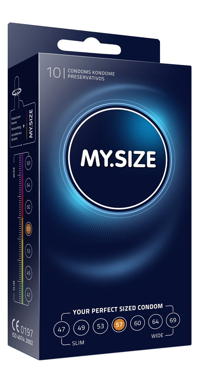 Презервативы MY.SIZE №10 размер 57 с силиконовой смазкой и резервуаром. Форма цилиндрическая. Качество ISO 4074: 2002, CE0197. Толщина - 0,07 мм. В упаковке 10 шт.