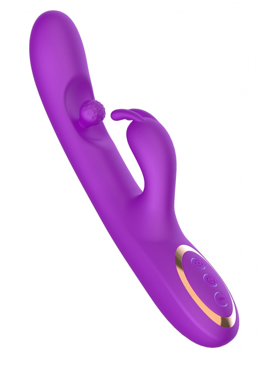 Фиолетовый вибратор-кролик с вращающимся шариком. Воздействует сразу на несколько эрогенных зон благодаря вибрации (7 режимов) и ротации шарика.