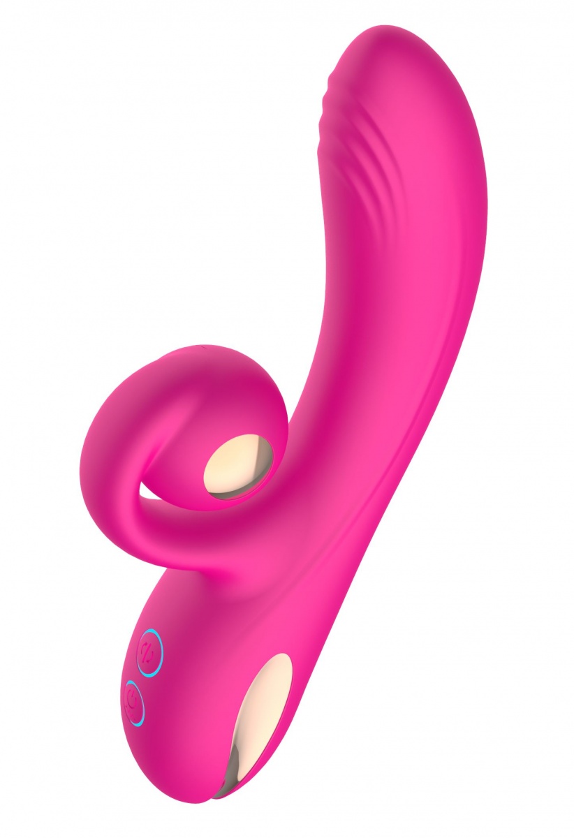 Розовый вибратор-кролик с функцией вращения ствола. 10 режимов вибрации, 10 скорсотей ротации.