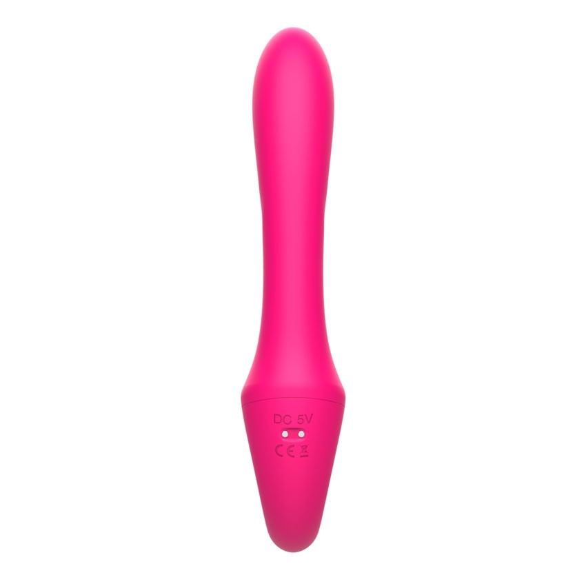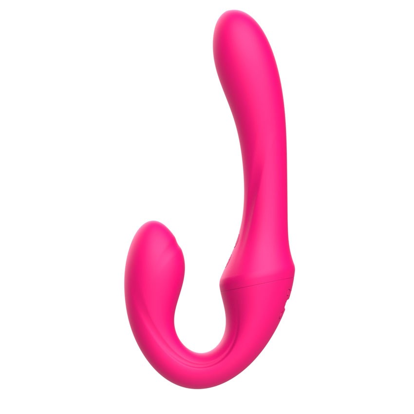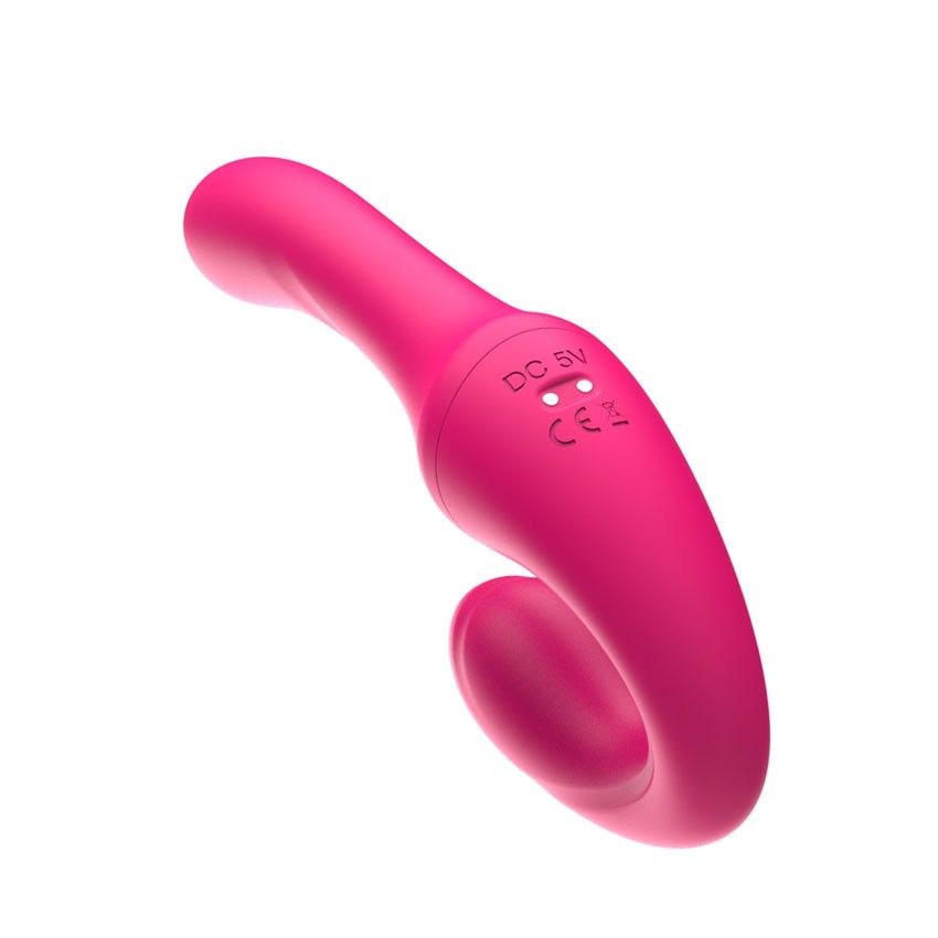 Розовый вибратор с клиторальным отростком и пультом ДУ. 7 режимов вибрации. Рабочая длина - 11,3 см.